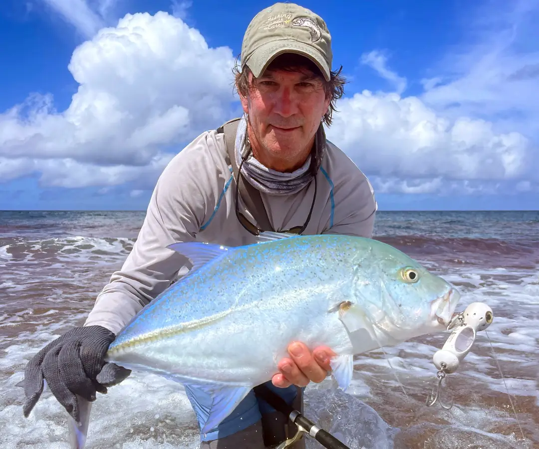 Giant, striped, golden, dusky, and bluefin trevally can all be found at Christmas Island. When fishing inshore, you will primarily target these species, particularly along the deeper edges of the flats and on the flats themselves. Occasionally, you may catch one while trolling for tuna and wahoo offshore. Both fly and conventional anglers can have success with these fish.