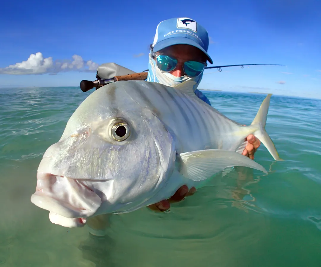 A 10 to 12-weight with a floating line is ideal for trevally on the flats. Just offshore and around the coral heads, you might consider a 12-weight or 14-weight outfit for giant trevally with sinking lines or 24 to 30-foot sinking shooting heads.
